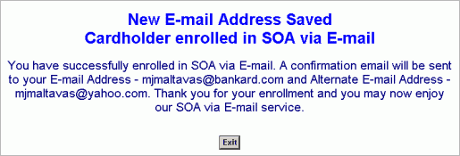 - You will see this confirmation message if you have enrolled your new e-mail address.