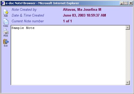 Erase icon: This clears the e-doc Note! Browser text box.