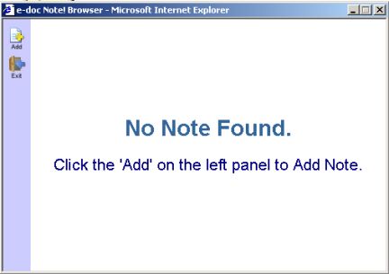 • You can add notes on the current viewed page. If you want to do so, simply place your cursor over any written text on the current page being viewed and double-click it with your left mouse button. After doing so, an e-doc Note! Browser will pop-up. A sample of e-doc Note! Browser is shown below.