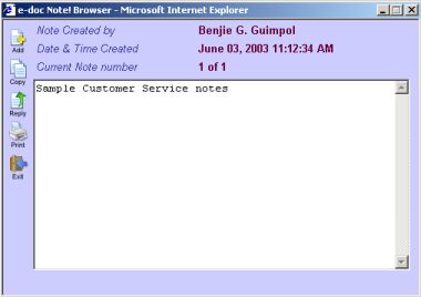 icon allows you to make notes as a reply to the notes made by the Customer Service