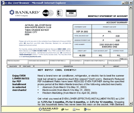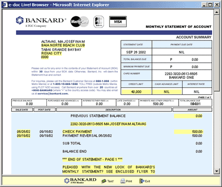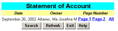 available Statement of Account with the corresponding Date, Owner and Page Number.
