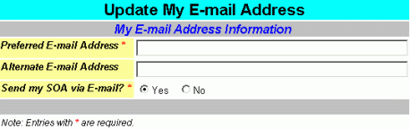 To modify existing e-mail address, click the Update My E-mail Address