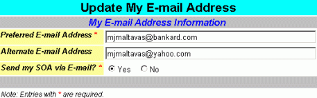 select No from the Send my SOA via E-mail option fields.